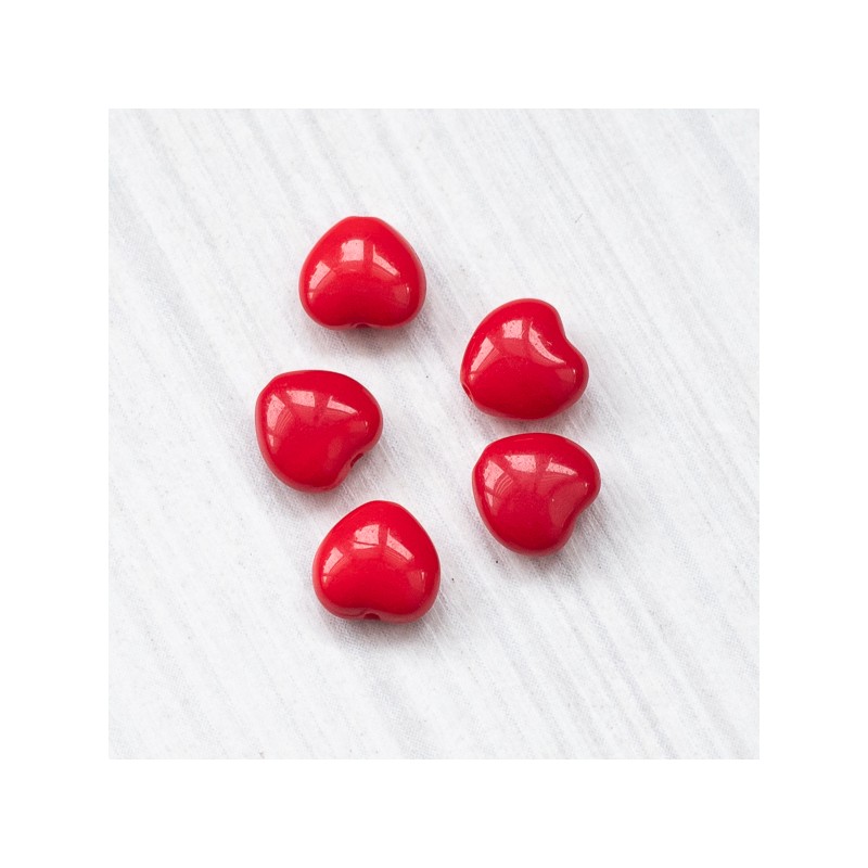 Чеські намистини сердечка 8 мм (червоні) 5 шт