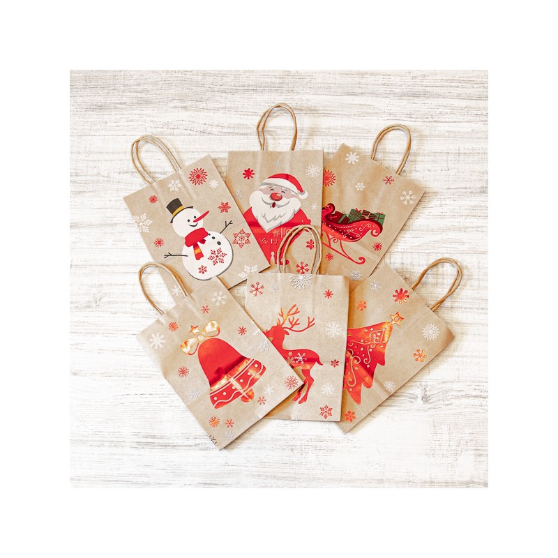 Пакетик подарунковий Новий рік, крафт, з ручками