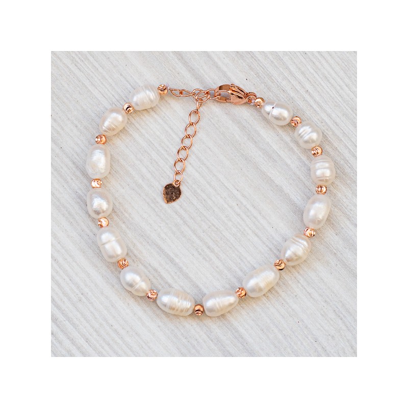 Браслет із натуральних перлин та фурнітурою під рожеве золото