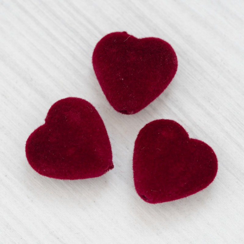 Намистина у вигляді сердечка оксамитового (темно-червоне)