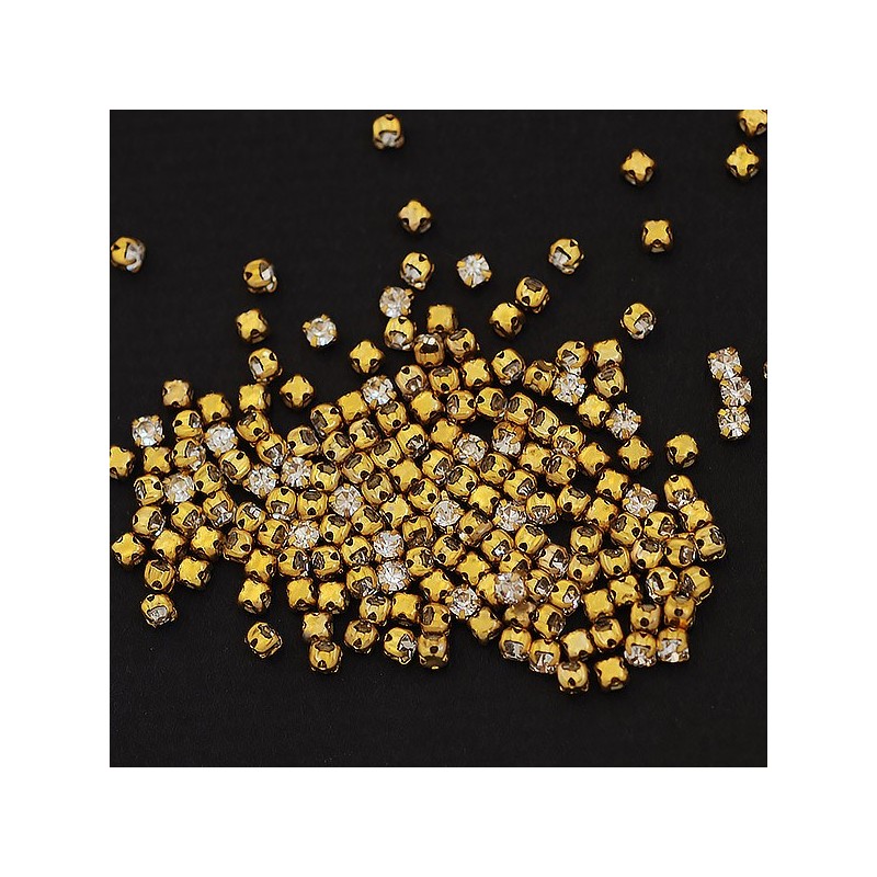 riv-462 Ріволі скляні круглі в золотих цапах (прозорі, 3 мм) 10 штук