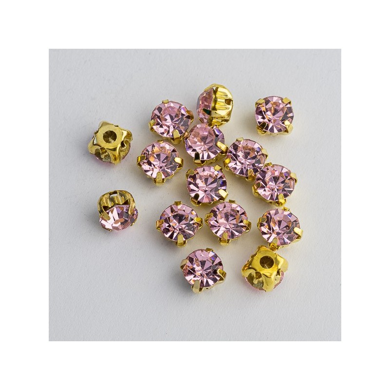 riv-1003 Ріволі в цапах під золото (світло-рожевий, 6 мм)