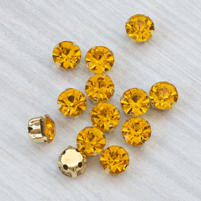 riv-464 Ріволі скляні круглі в цапах (жовтий, 6 мм) 1 штука