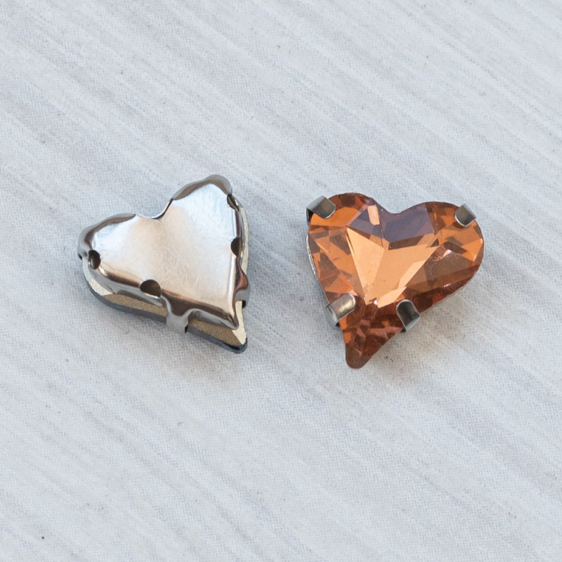 Ріволі скляні сердечко в цапах (12х13 мм) персик